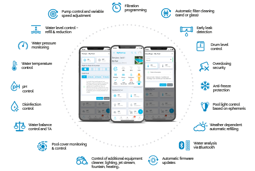 With a smart control unit in the pump house and powerful data analysis in the cloud, the system behaves like a permanently stationed pool technician: continuously reading the pool’s vital signs, comparing them with historical trends and cross‑checking with external factors such as air and water temperature or cover status, then translating this into a clear, shared view of the pool’s actual condition for both owner and professional.